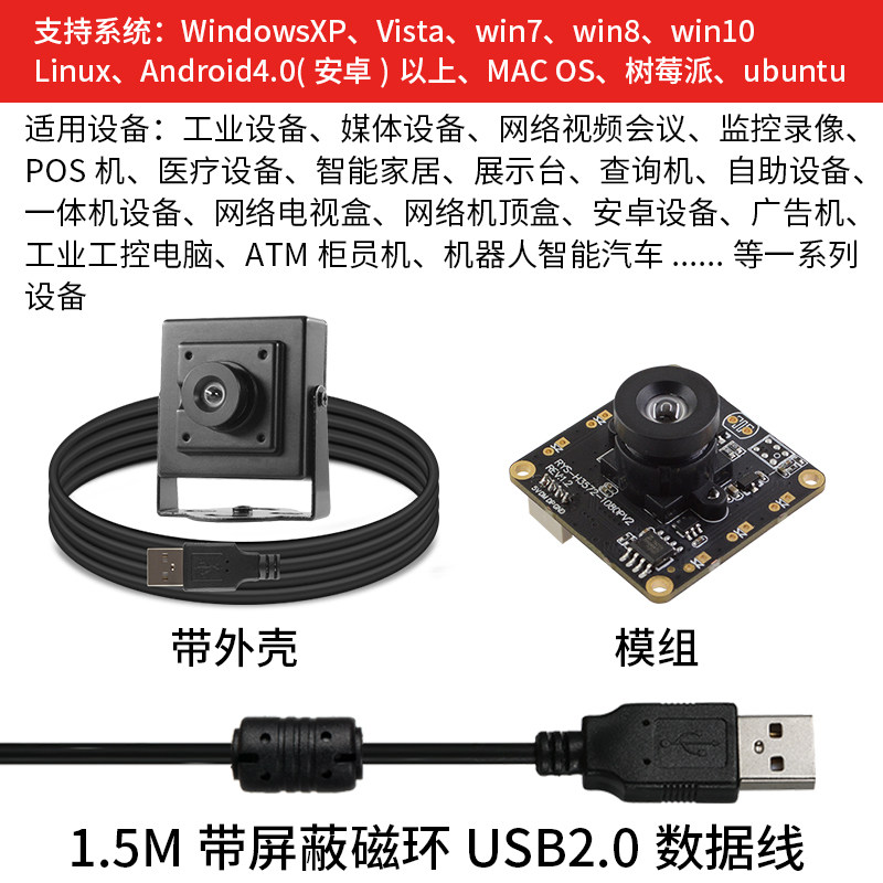 USB industrial camera module 2 million HD computer 1080P drive-free UVC face recognition Android Raspberry Pi