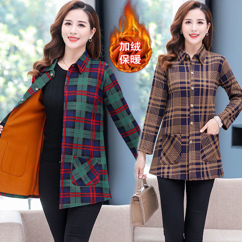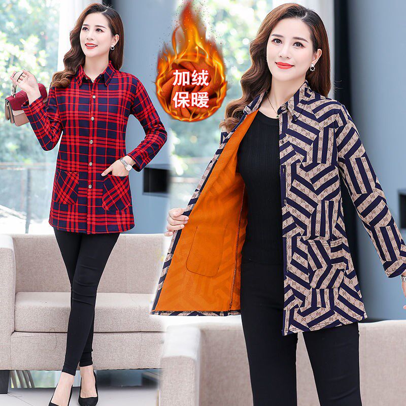 Middle - aged women's clothes plus - plate shirt 2020 new mom winter warm clothes shirt pie fashion tops