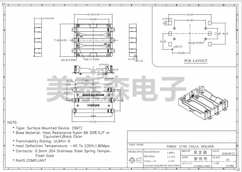Patch 3 Festival 21700 Battery case 3 Festival 21700 Lithium battery holder SMD 21700 nylon flame-retardant battery compartment
