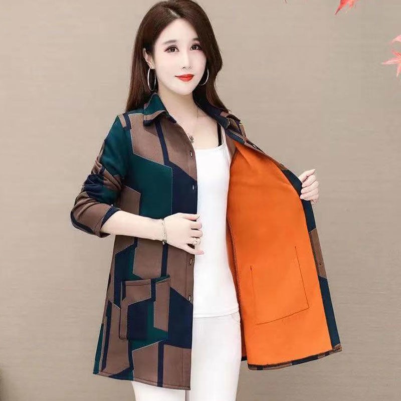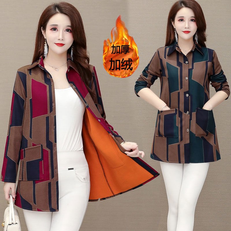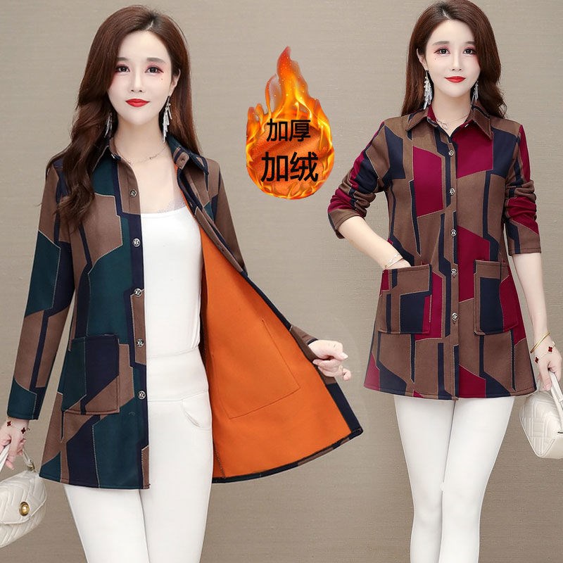 Mom dressed in autumn winter warm shirt in elderly people plus thicker shirt woman middle long edition casual coat coat