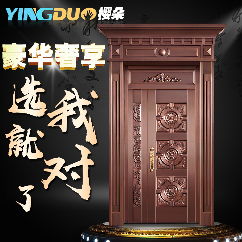 Real copper door villa copper door entry door household pure copper double door child mother door single door class A security door cherry blossom