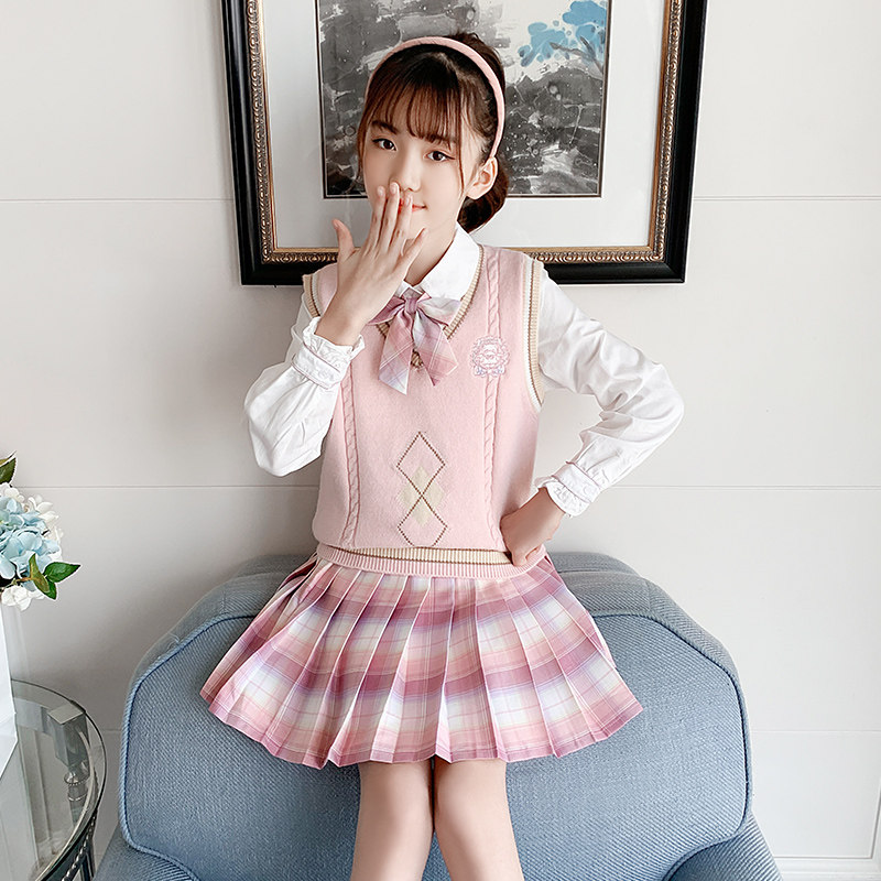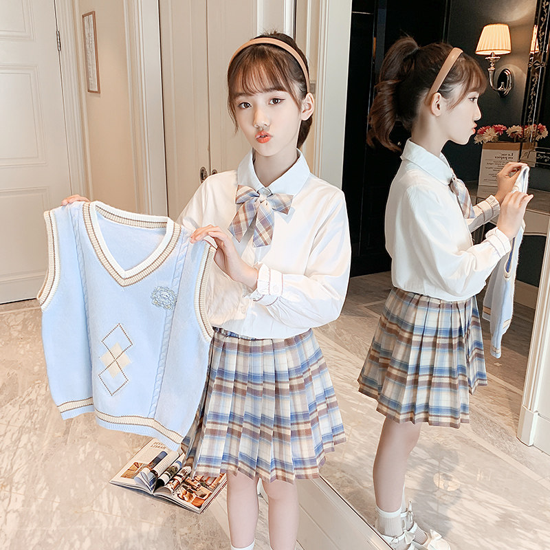 Children's autumn clothes net red JK suit Western style 2021 new girls' college style fashionable three-piece girl 10-year-old tide