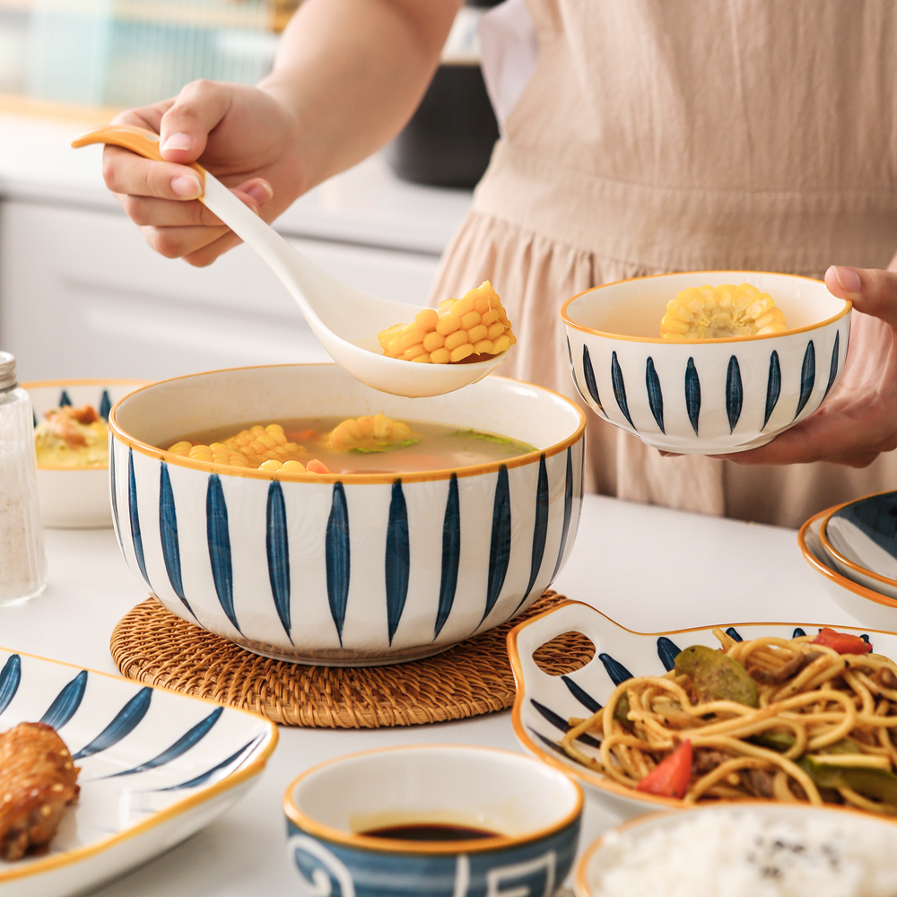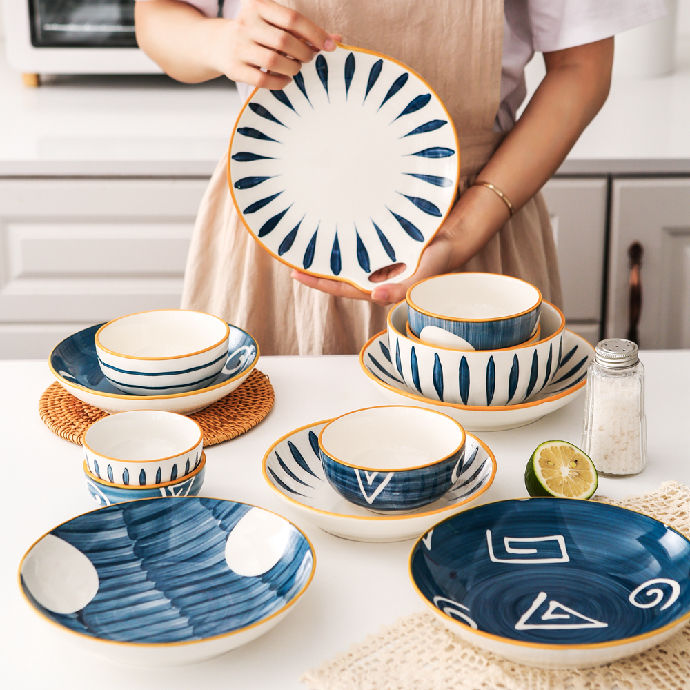 Japanese-style bowls and dishes set household bowls and tableware 2021 new ceramic bowls and plates housewarming bowls and plates creative bowls and chopsticks dishes