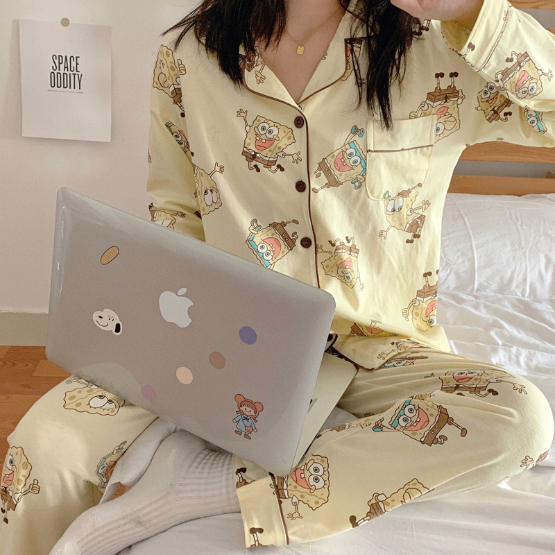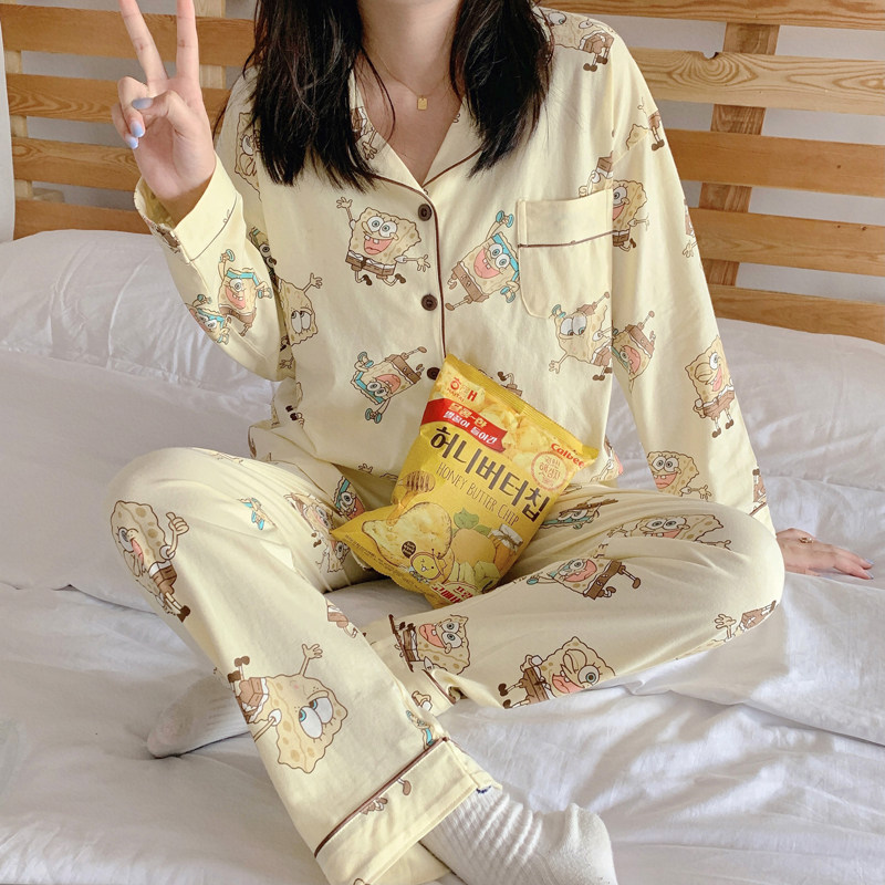 Cream Cake ~ CHAO Warm Color Sponge Baby Sleepwear Woman Spring Autumn Season Pure Cotton Cartoon Teenage Girl Home Ju Clothes