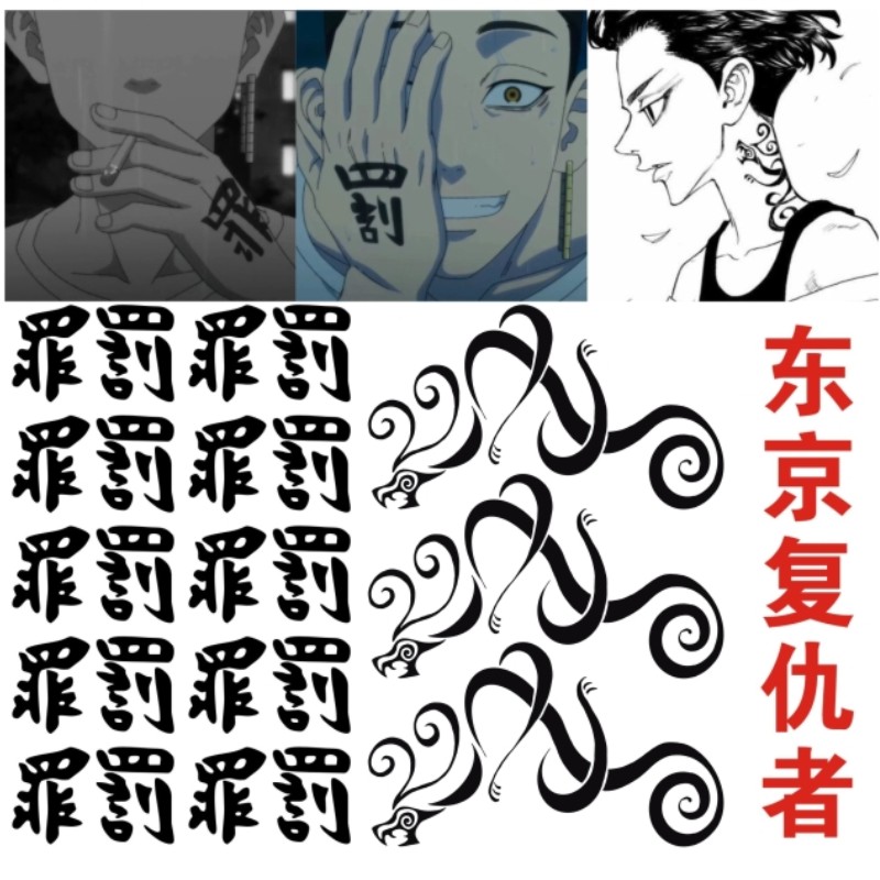Tokyo Avengers Rebirth Anime COS Sano Wanjiro Mikey Dragon Palace Temple Ken tattoo stickers Chinese characters
