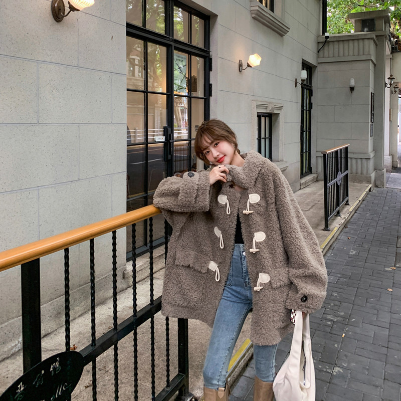 GG Brown Bear Lamb Cut Fur Fur Coat Cover in the middle - long - plate coat winter tide