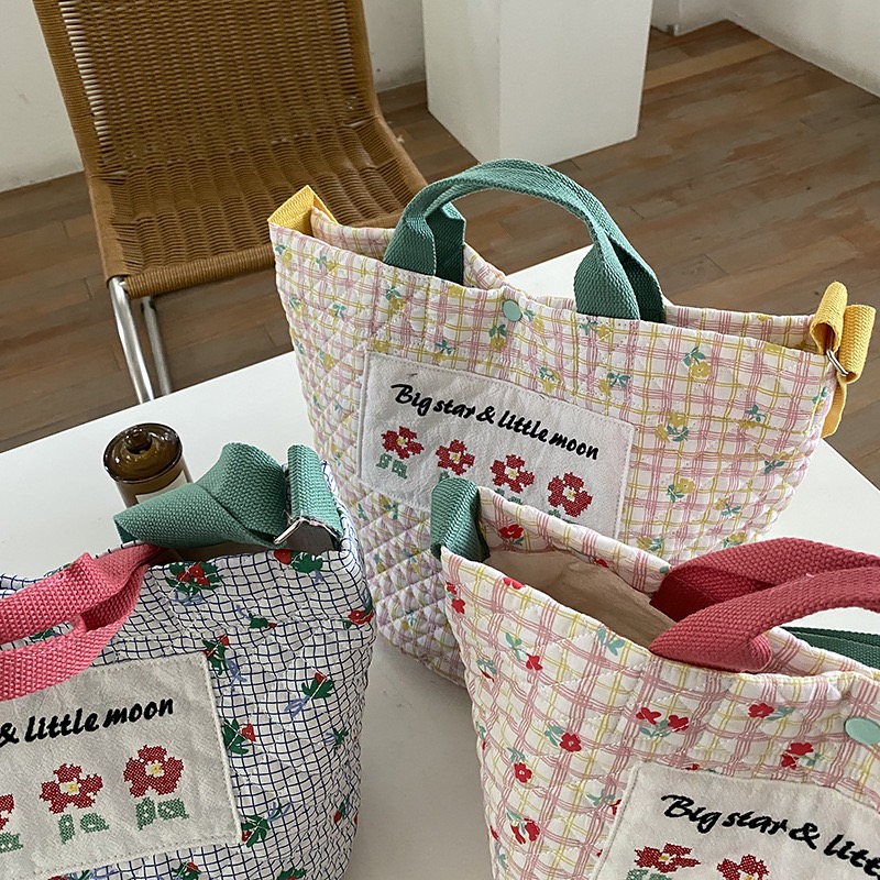 Blue and white plate handbag (red) lattice handbag (yellow) lattice handbag