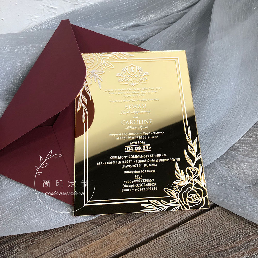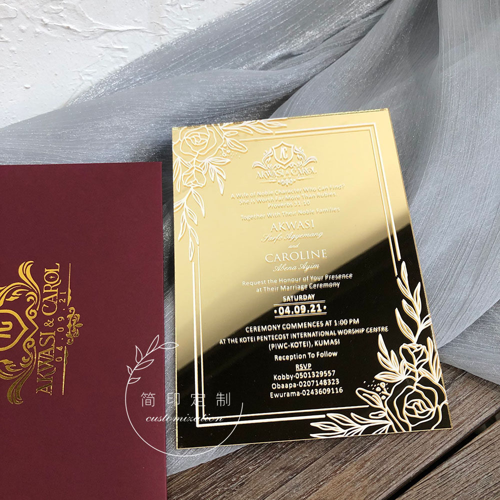 Light gold mirror acrylic business opening invitation wedding invitation company annual meeting customized marriage invitation