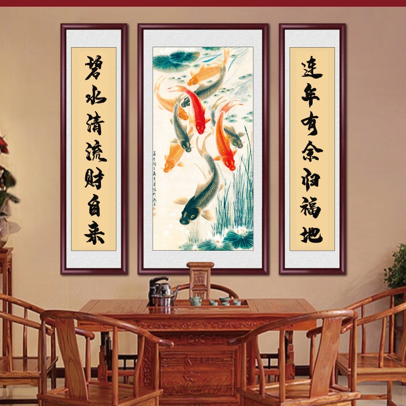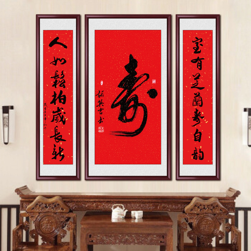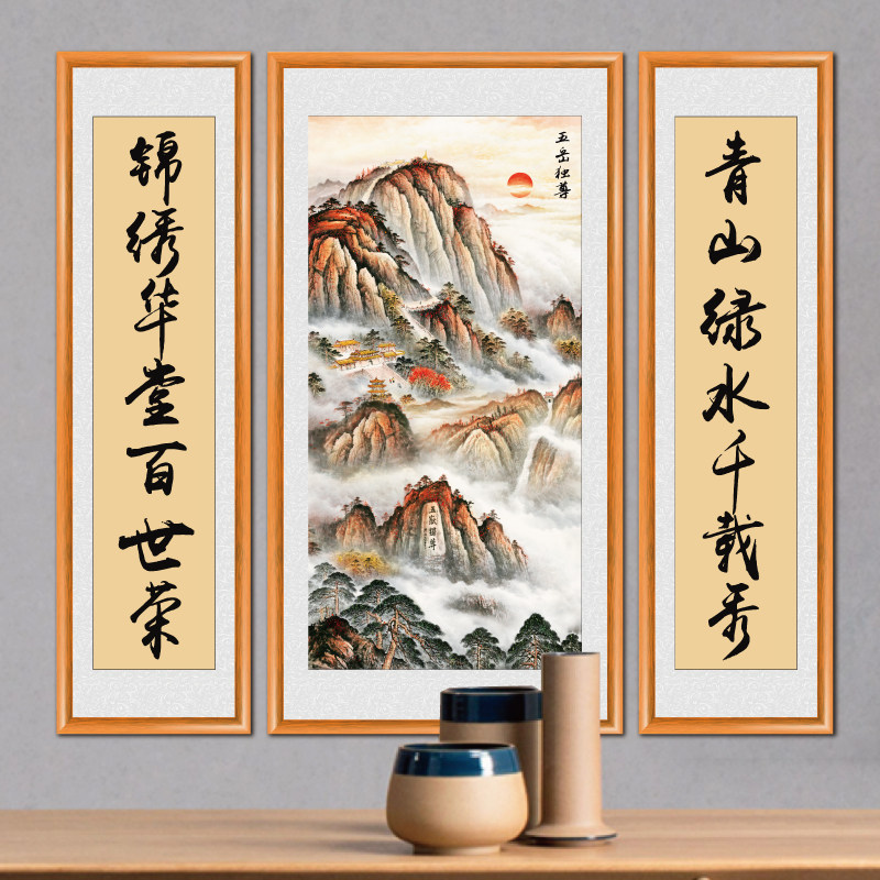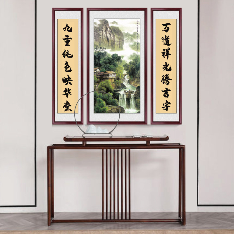 Rural hall hall atmosphere triptych hanging painting living room background wall painting hall calligraphy and painting couplet landscape decorative painting