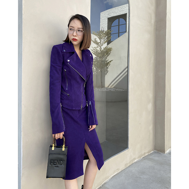 Z Boss Imported South Africa Mountain Goat Leather Dress Design Extremely Simple Bag Hip Cut Open Fork Design 100 Hitch Half Body Dress