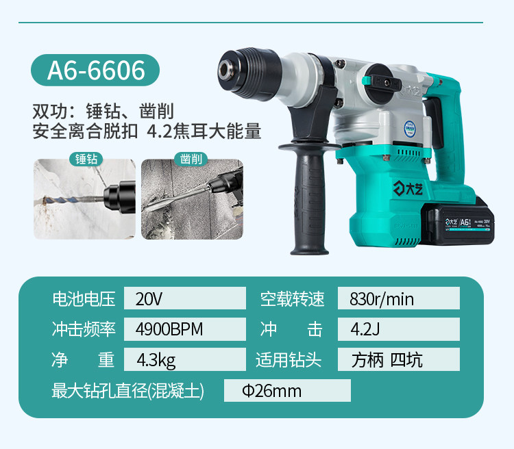 6606 dual-purpose electric hammer (4 0Ah one charge) package 6606 dual-purpose electric hammer (4 0Ah two electricity and one charge) package 6606 dual-purpose electric hammer (4 0Ah two electricity