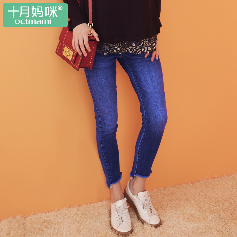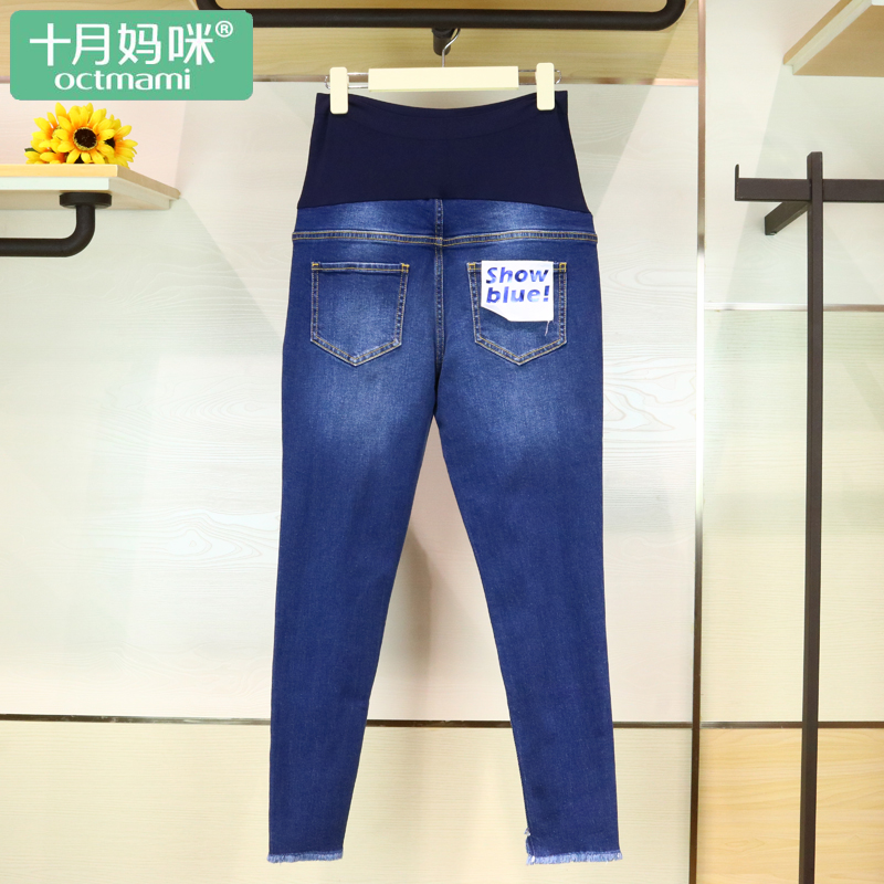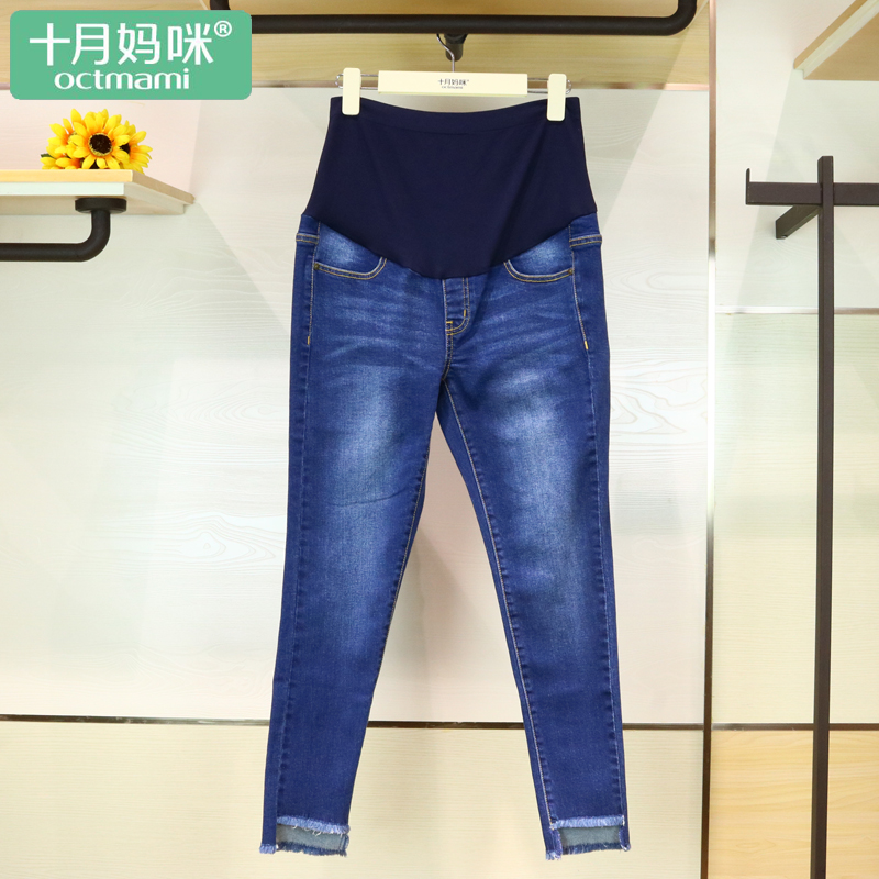 October Mommy Pregnant Women's Jeans Spring and Autumn Pencil Pencil Pants Outer Wear No Trace Stomach Support Fashion All-match Trousers