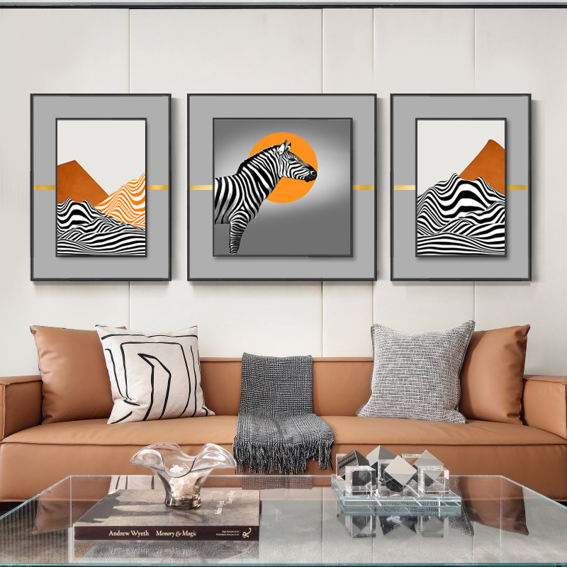 Light Extravagant Living Room Decoration Painting Modern Abstract Sofa background wall triptych minimalist hanging painting high-end double painting Junma-Taobao
