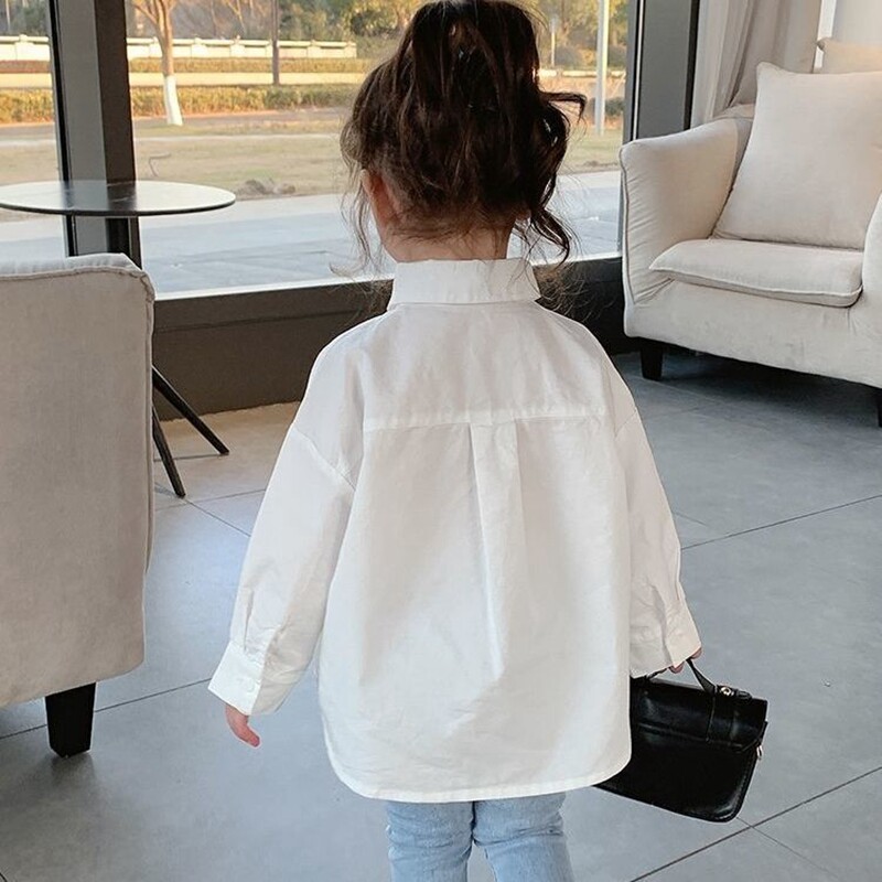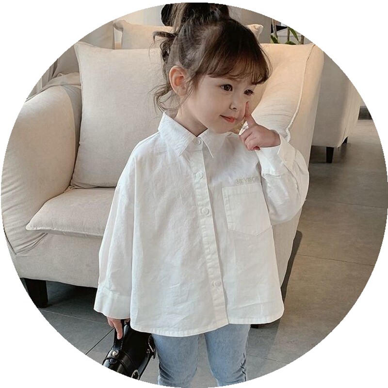 Girl Shirt Spring Autumn Outside Wearing 2021 Bottom White Alphabet Korean version Long sleeves Baby Baby Shirt Blouse