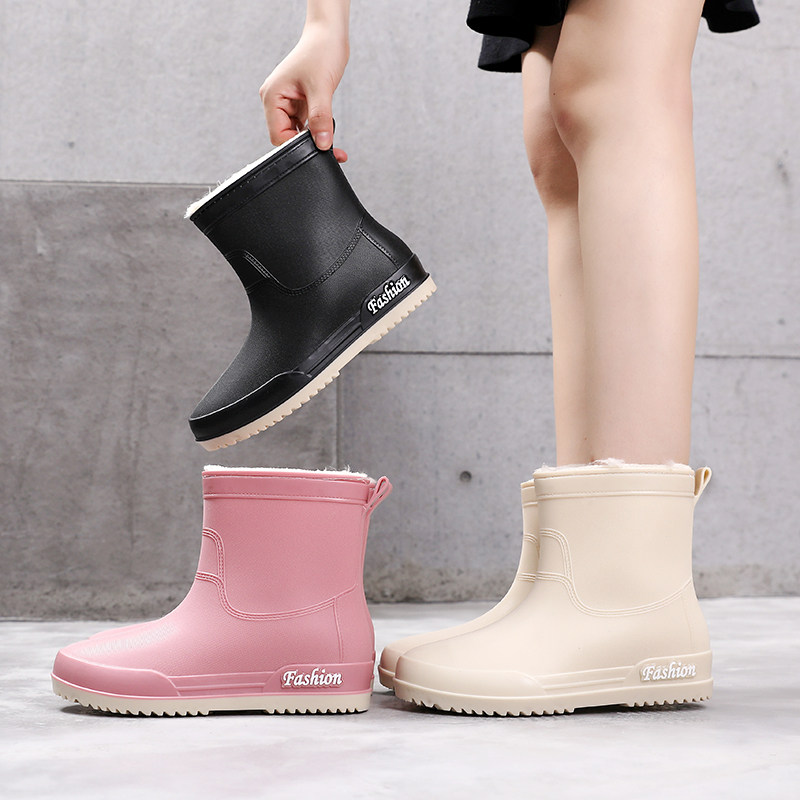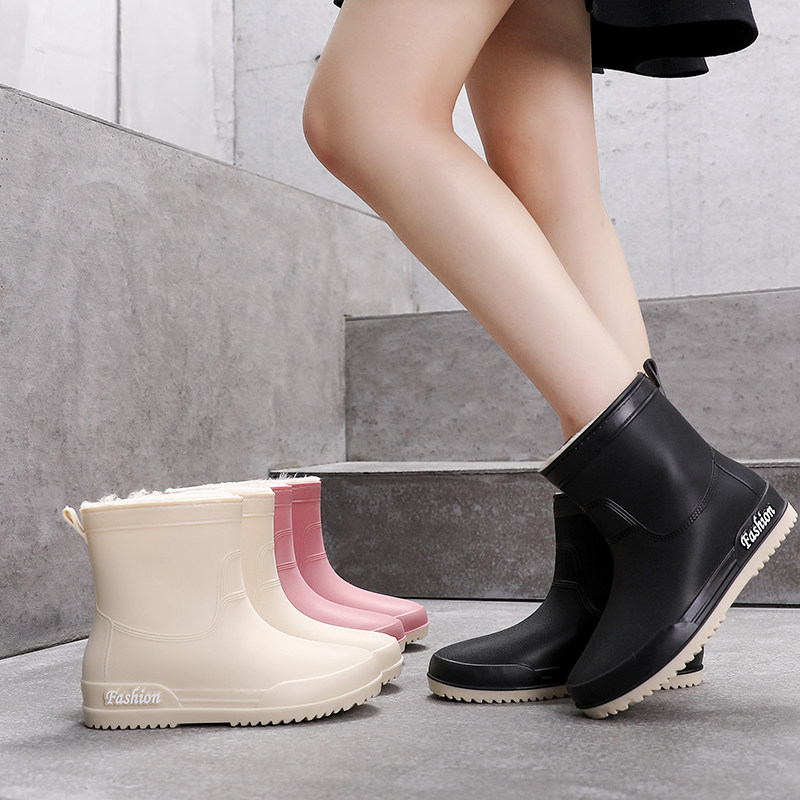 Gush Rain shoes Women's fashion Exterior Wear Women's Winter Short Drum Gg Cotton New Rain Boots Thickened Water Shoes Waterproof Rubber Shoes
