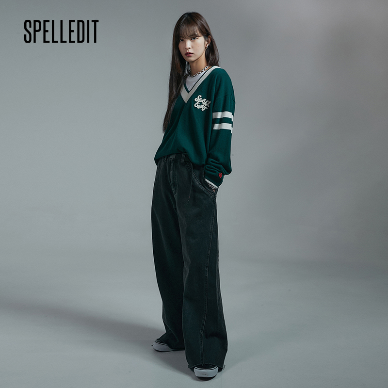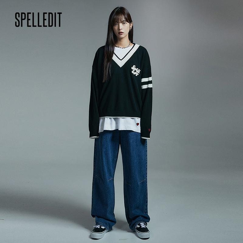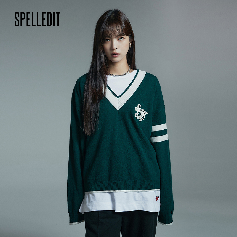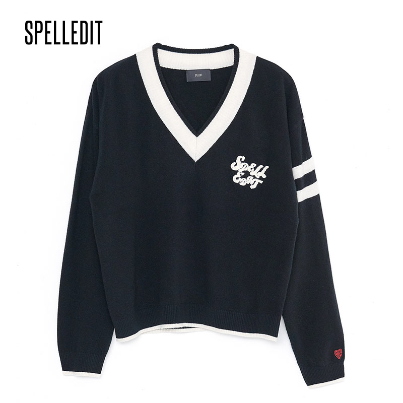 SPELLEDIT spring and summer V-neck embroidered sweater women's niche fashion lazy college style top women's sunscreen