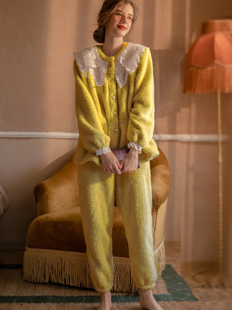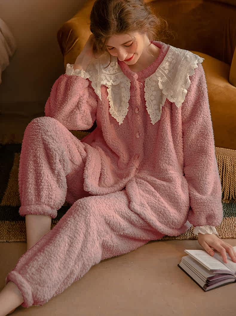 Sherpa velvet pajamas winter women's fleece doll shirt cute pajamas women's 2021 new winter style thickened and can be worn outside