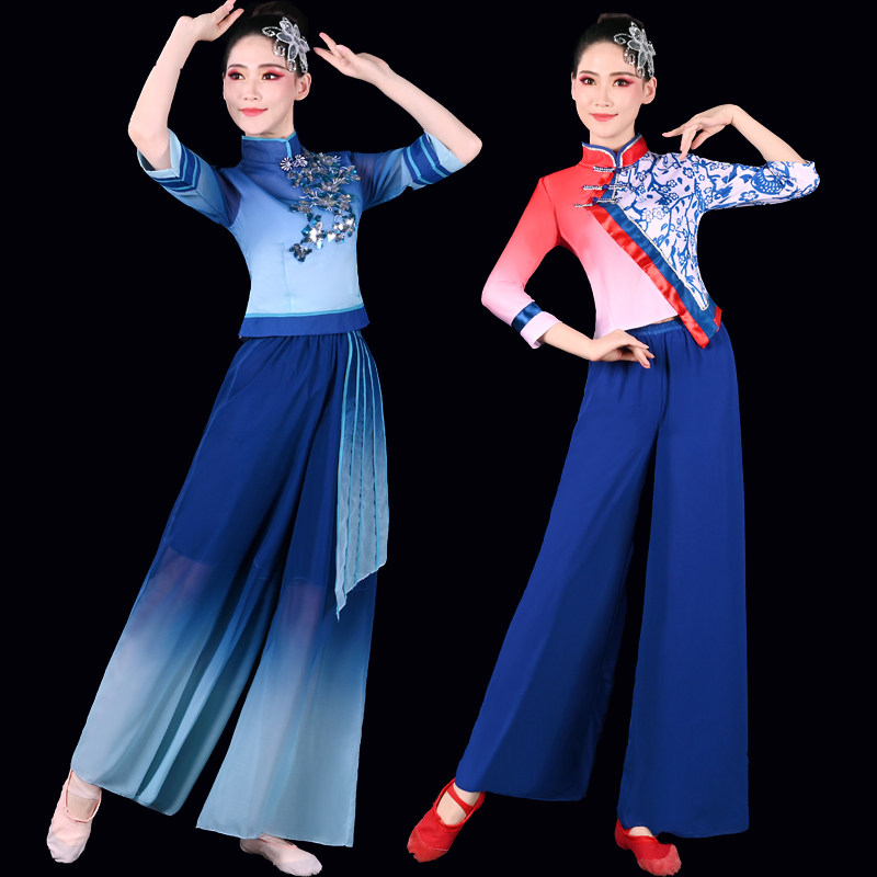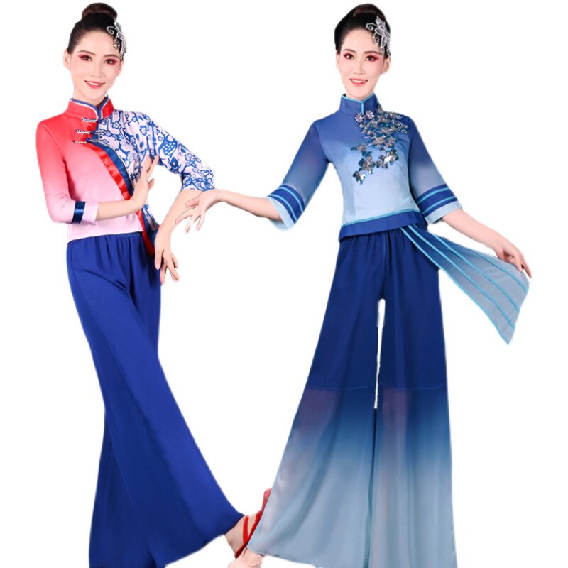 The rice sprouts serve out the women's 2021 new Chinese style wind dance suit modern waist drum fan dance suit snowspun and flutter