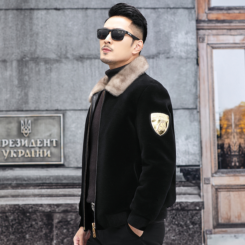 Haining new fur coat sheep sheared coat men's wool fur one mink lapel short jacket tide