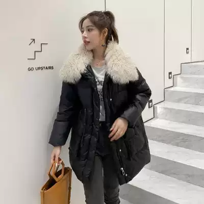2021 long version of Down Jacket Women's white duck down beach wool big wool collar thick warm slim winter coat