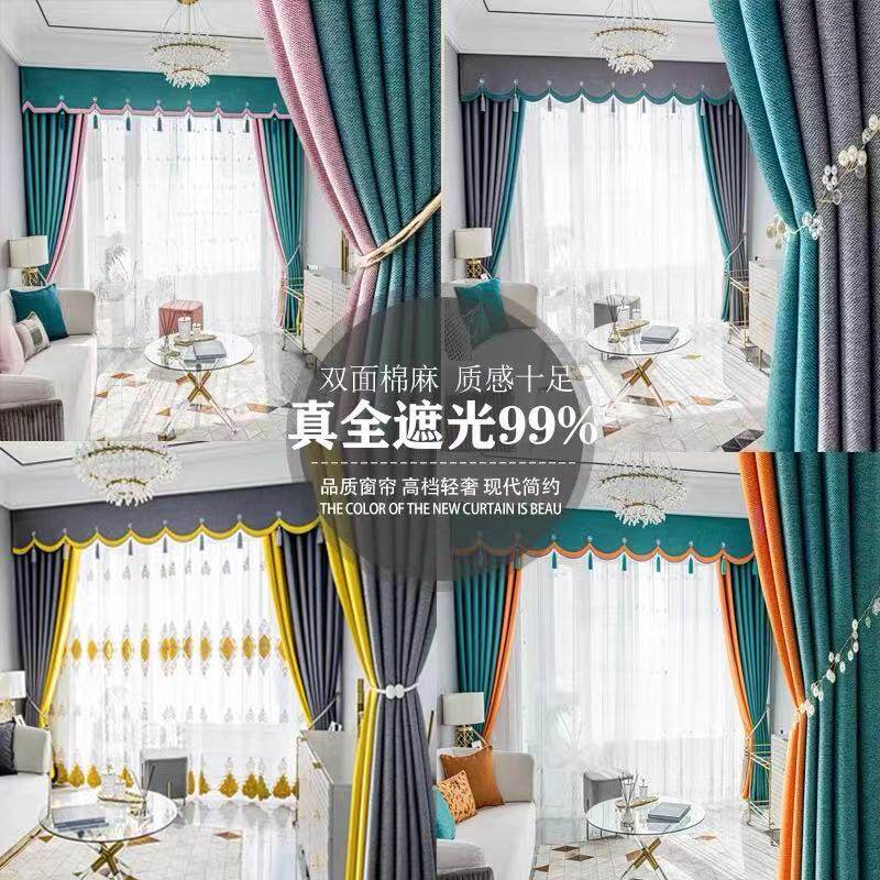 Curtains 2021 new living room high - grade atmospheric full - shaded bedroom rod with a complete modern minimal light luxury cotton linen