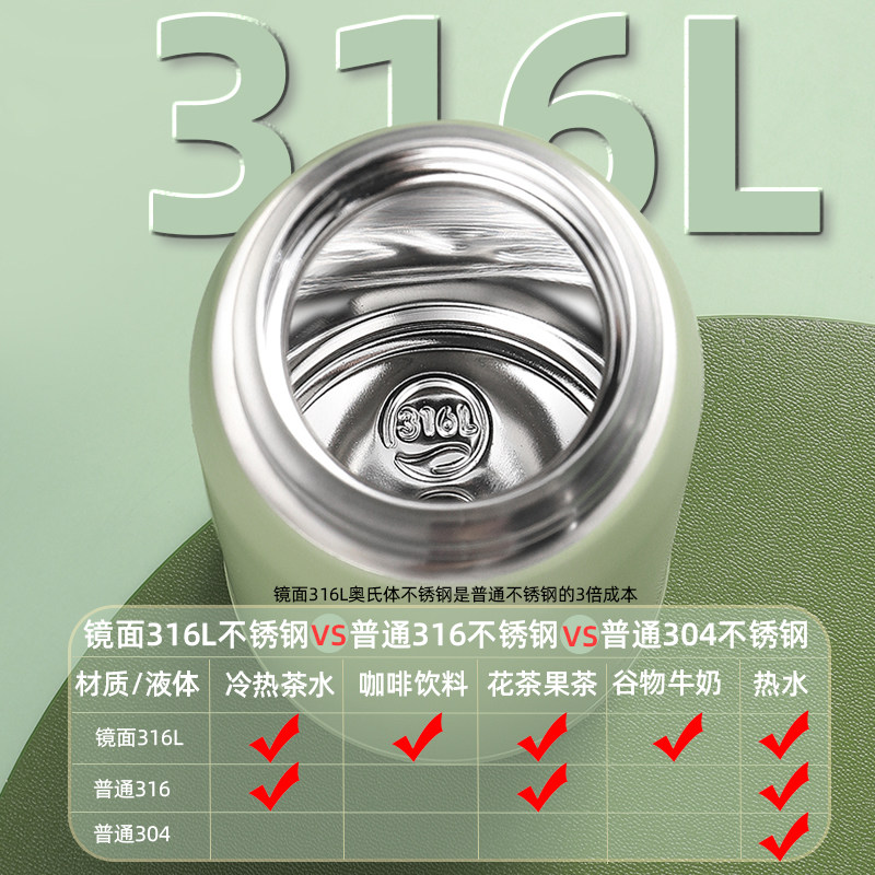 Bio-insulated cup female male portable 316 stainless steel large capacity high face value student water glass sub upscale