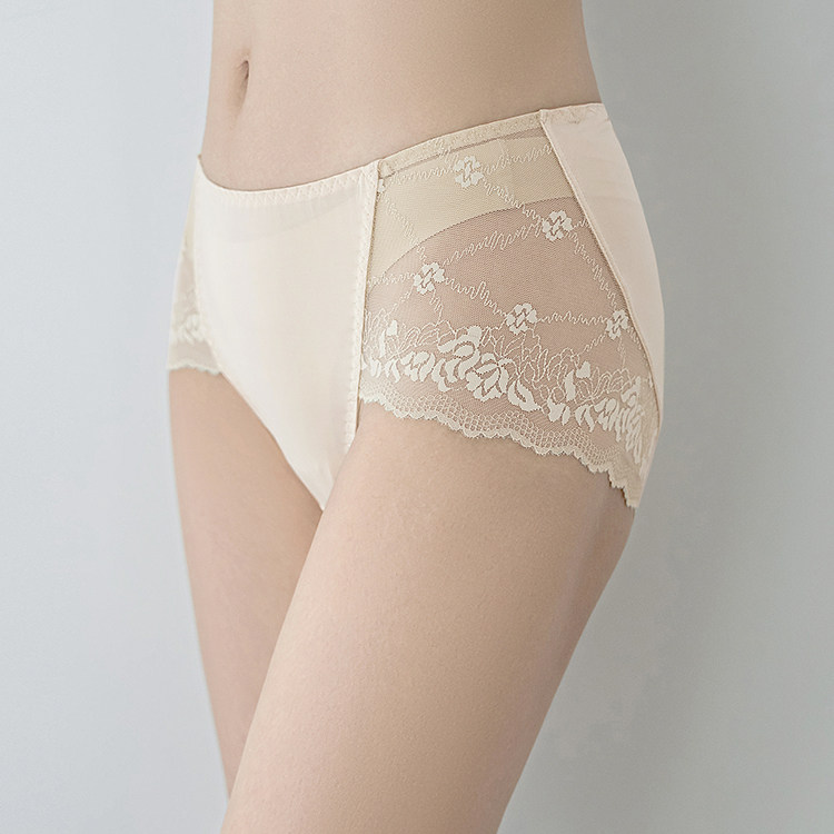 Real Silk Briefs Women Summer Thin sans silk No marks Breathable Hip Mid Waist Sexy Big Ruler Code Lace Triangle Shorts