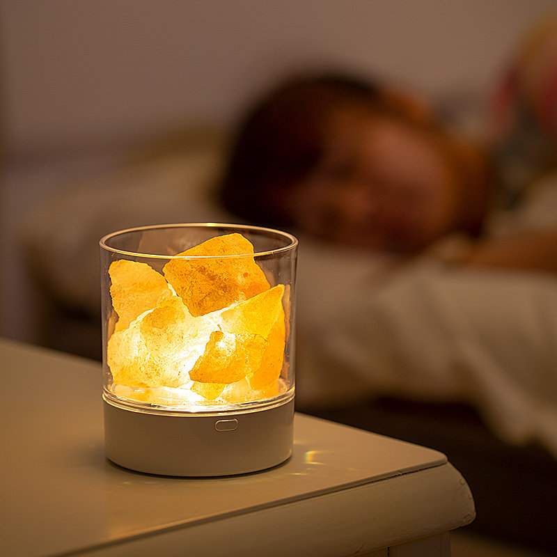 Himalayan crystal salt ore table lamp incense small night light bedroom headboard decorated with eye-protecting companion sleep expanded and fragrant stone