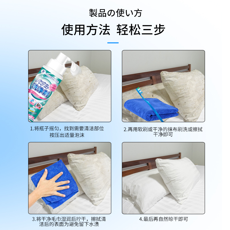 Pillow hair yellow cleaning agent liquid wash-free household pillowcase pillow core to yellow mildew spot sweat stain cleaner artifact