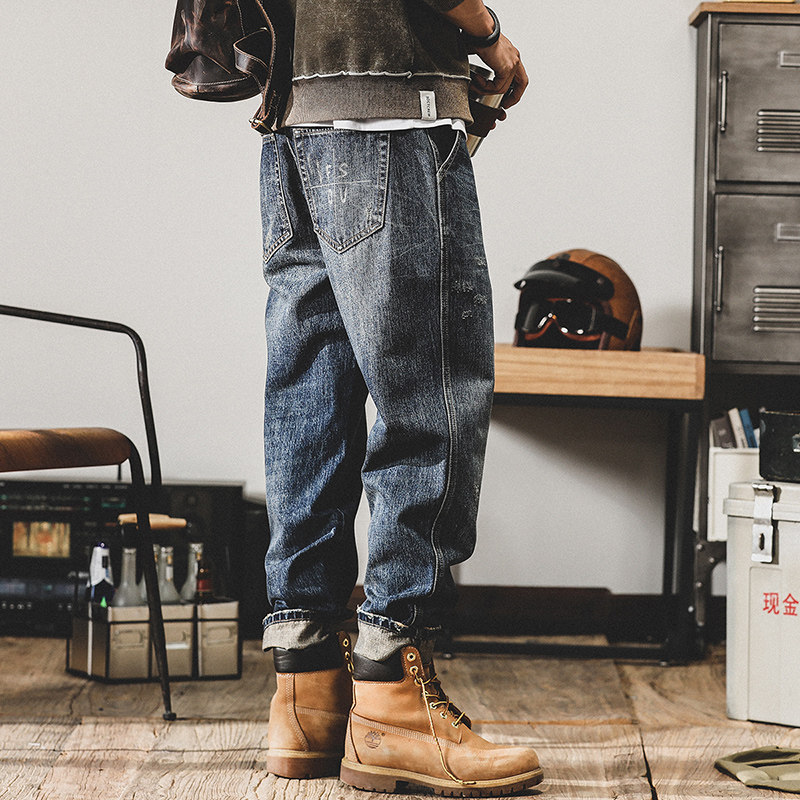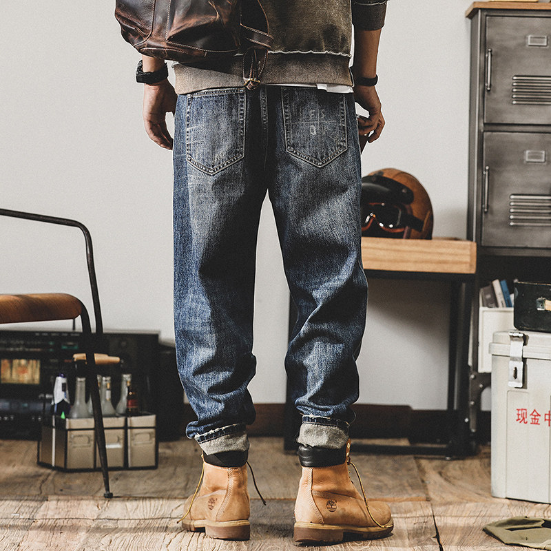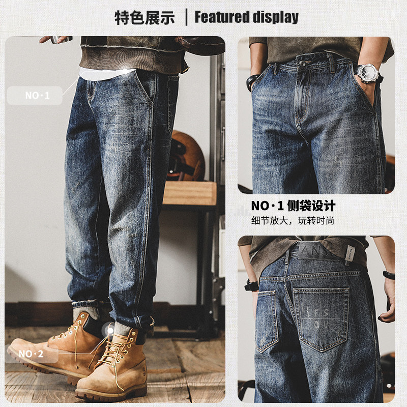 Blockbuster vintage cargo jeans men's fall/winter plus velvet 2021 new straight leg loose winter wide-leg slacks