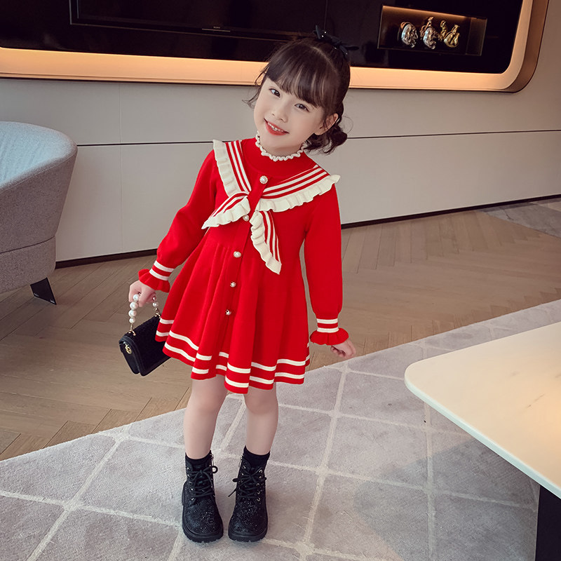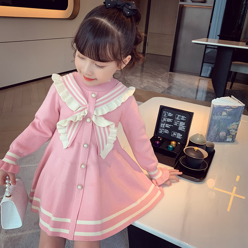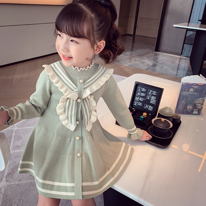 Girls dress autumn dress children's college style skirt spring and autumn new foreign knit long sleeves little girl sweater skirt