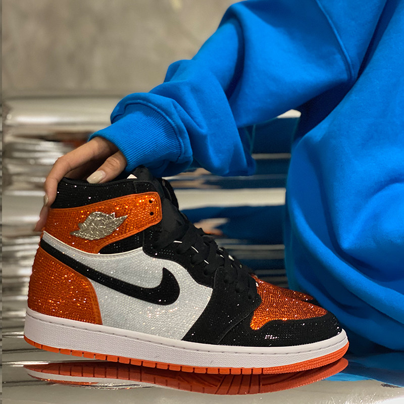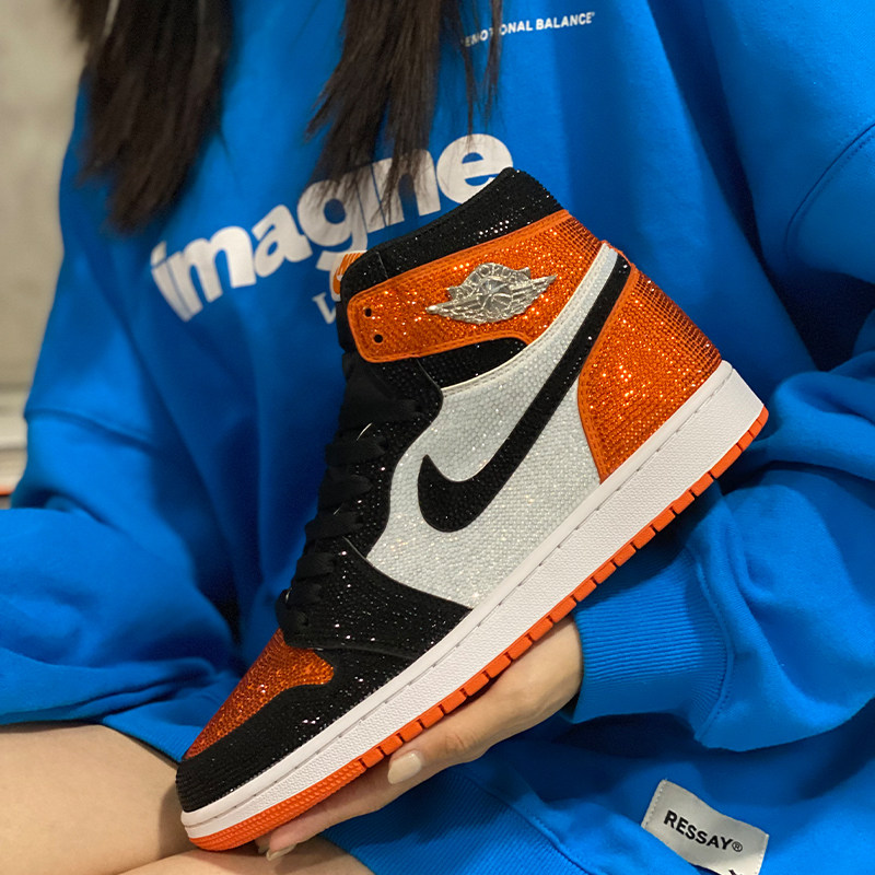 AJ1 high-top buckle full diamond sneakers custom 21Kcustom sneakers customization private custom black orange wedding shoes