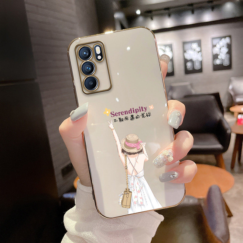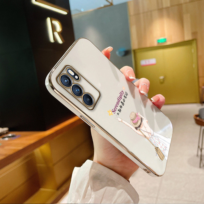 opporeno6 plated straight side shell (bright white) - Bier girl-delivery protective film opporeno6 plated straight side shell (light cyan) - Bie girl-delivery protection