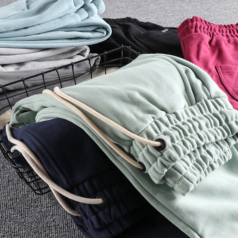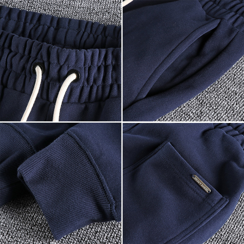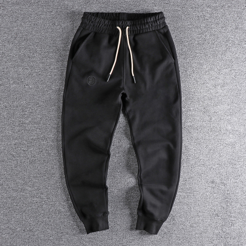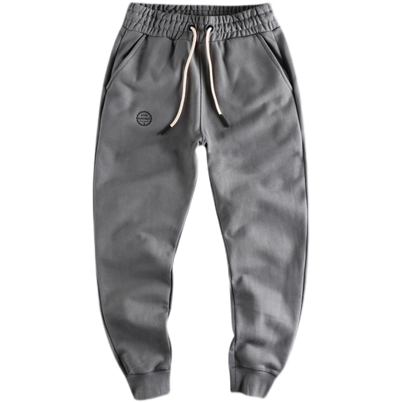 Spring pure cotton plus velvet thick section foot pants men's simple washed retro solid color closed small feet sweatpants