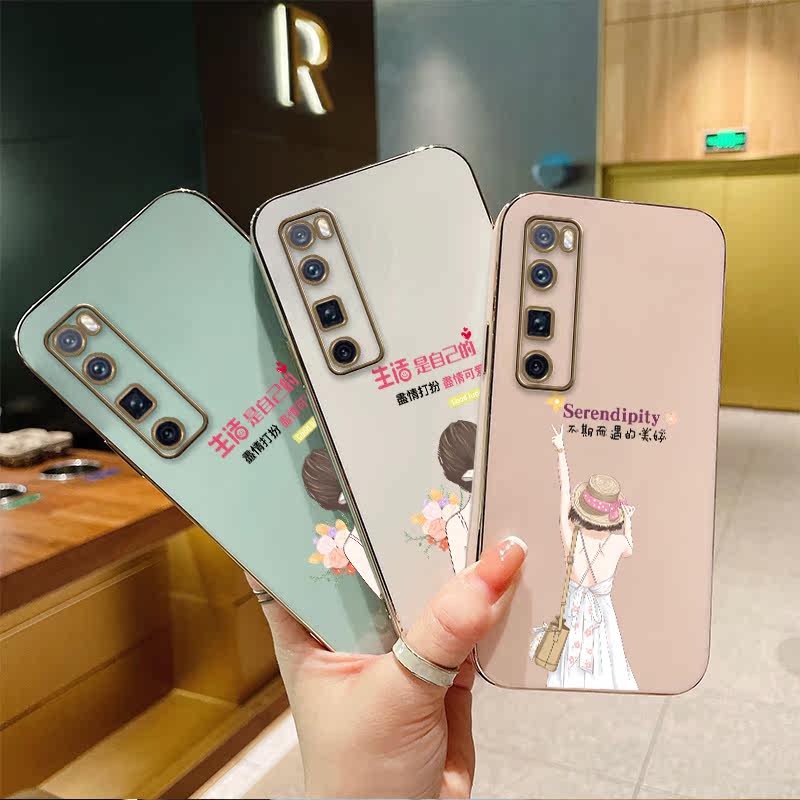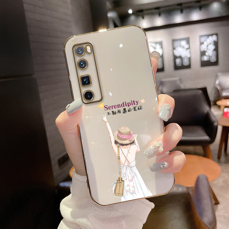 Huawei nova7pro plated straight side shell (bright white) - Bier girl-send protective film Huawei nova7pro plated straight side shell (light cyan) - Bie girl-send