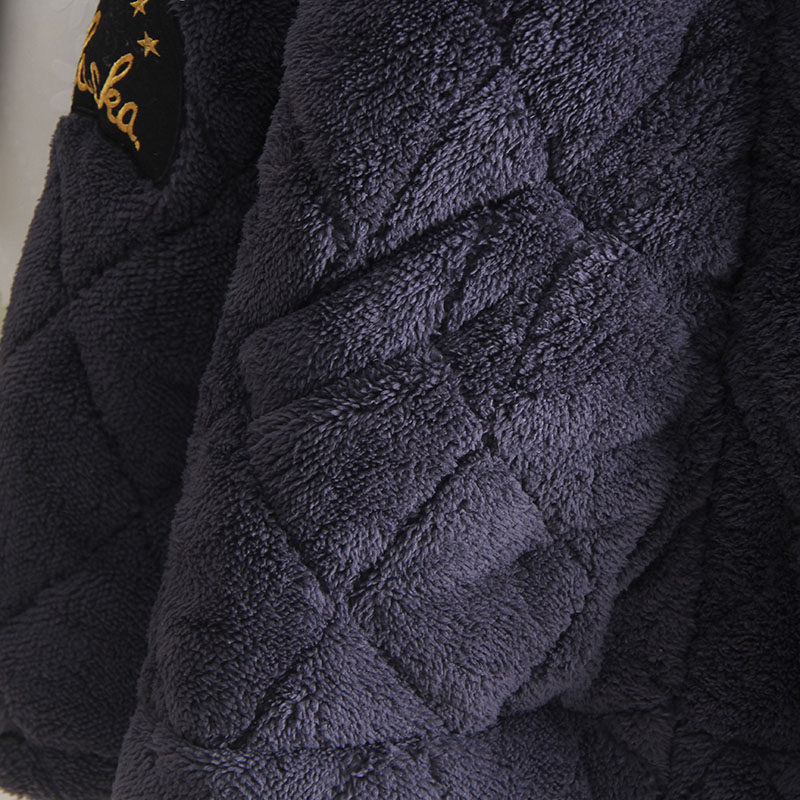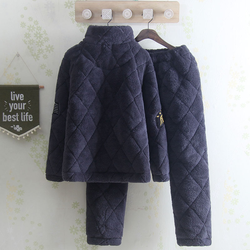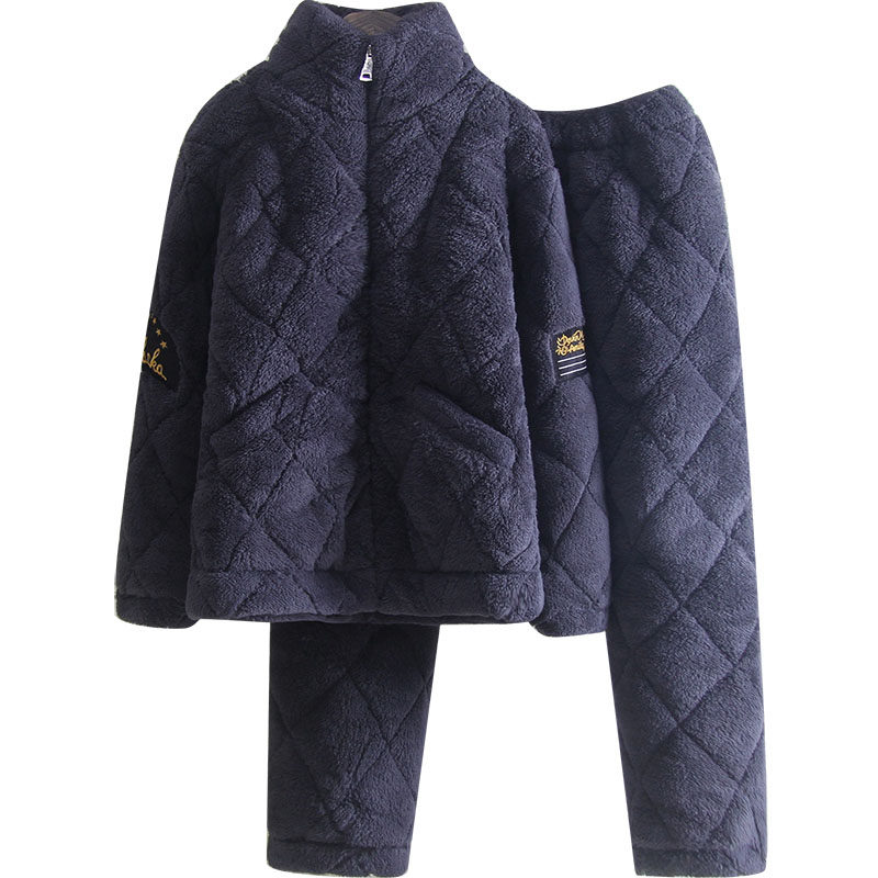 High-end men's and women's winter three-layer thickened quilted black casual coral fleece quilted warm solid color home service suit