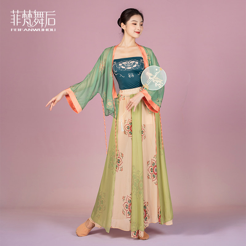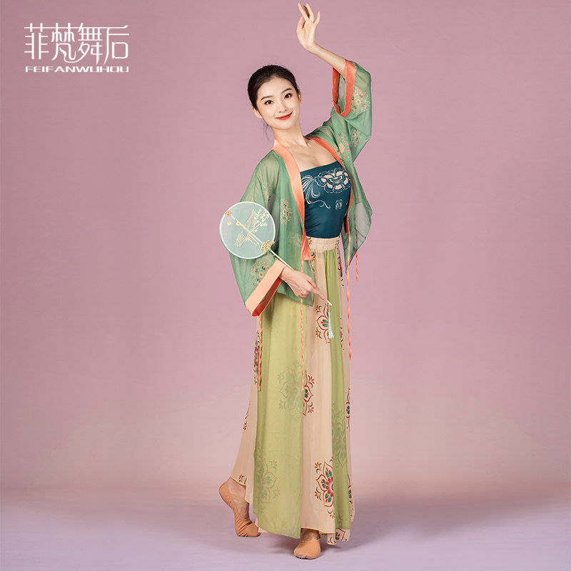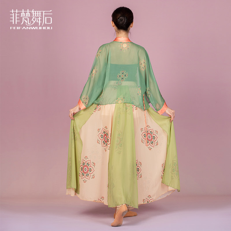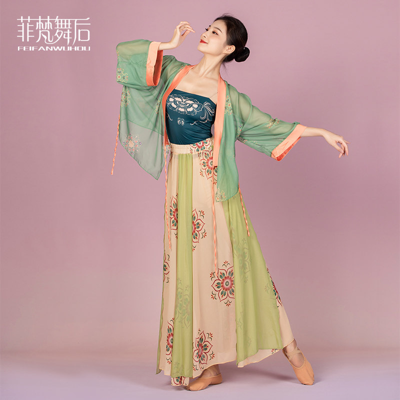 After Fivan dance, China National Wind Dance Dance Exercises in Long dress Performance tightness Double Elegant Dance Dance Suit