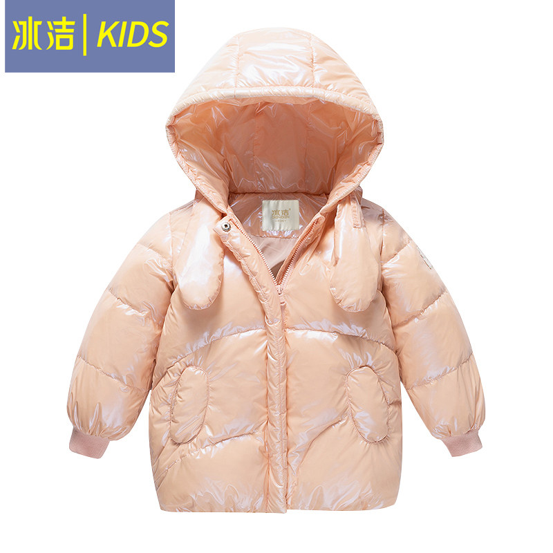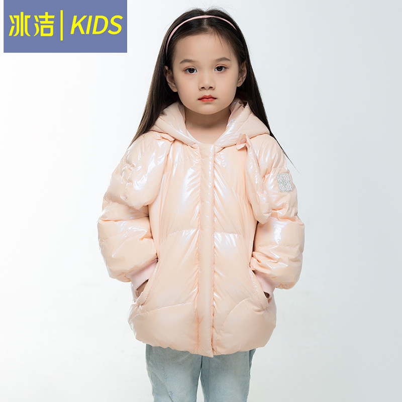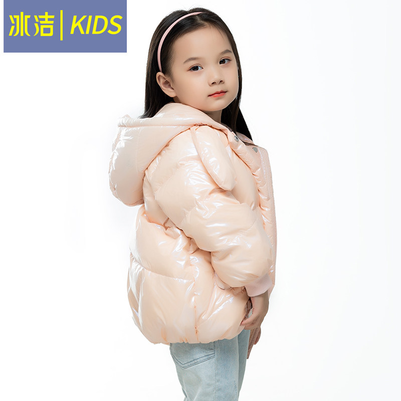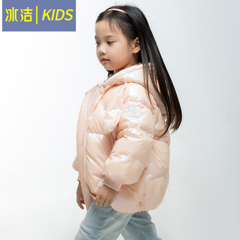 Bingjie 2022 new girls' thick down jacket bright surface children's short fashion Western style warm jacket