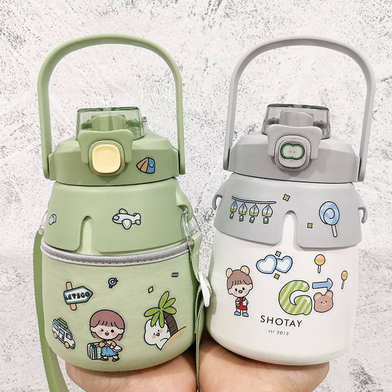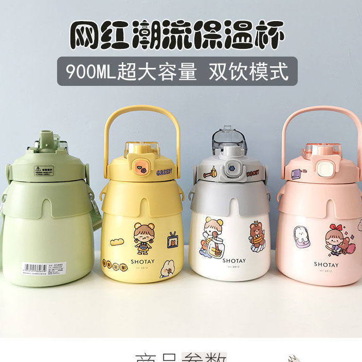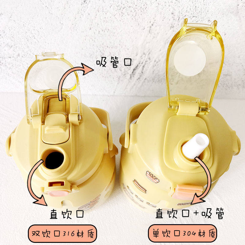 W Children's insulated cup net red female cuddly high face value with straw 316 food grade student large belly water glass large capacity