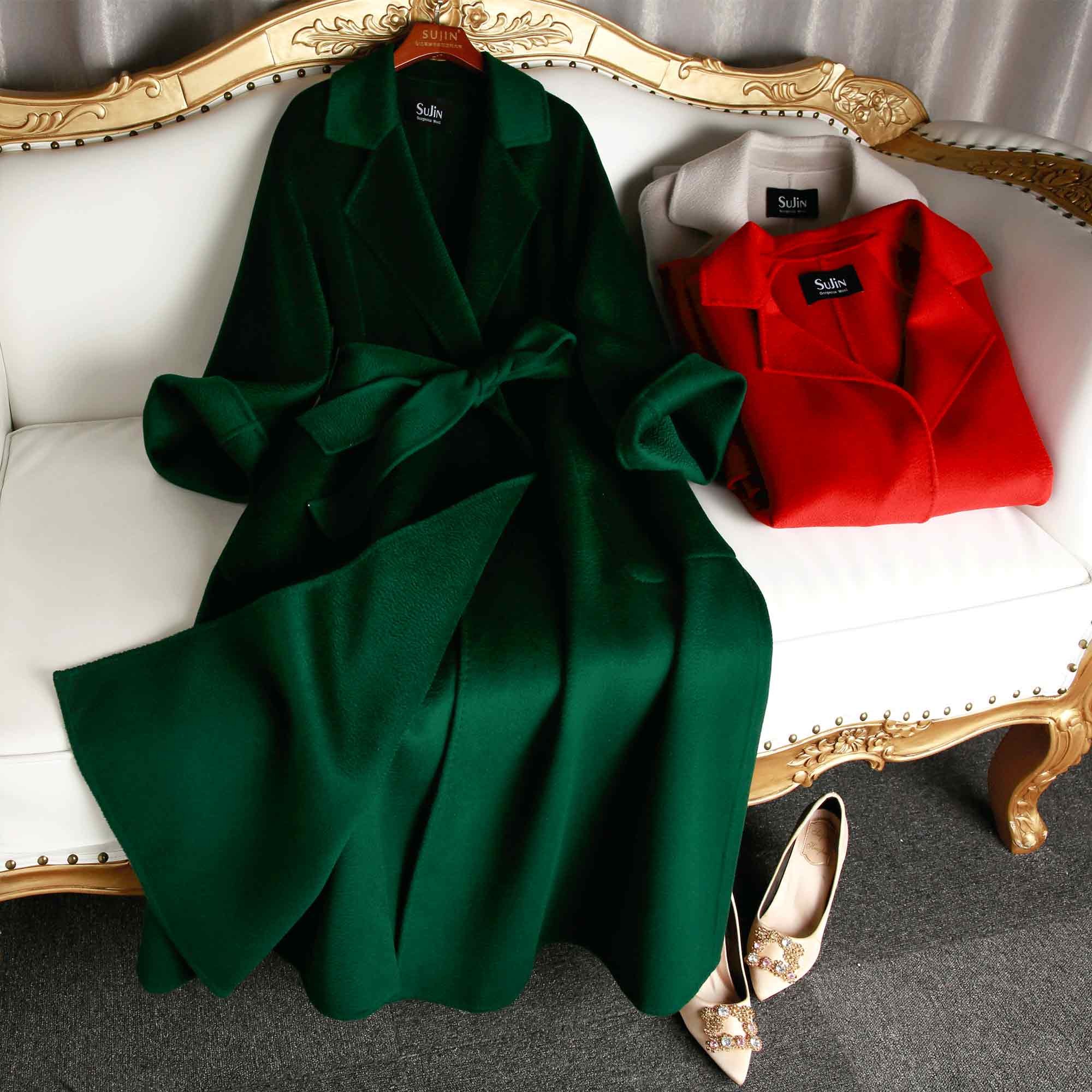 Red water corrugated double-sided cashmere coat women's long version 2021 New loose super long woolen coat women