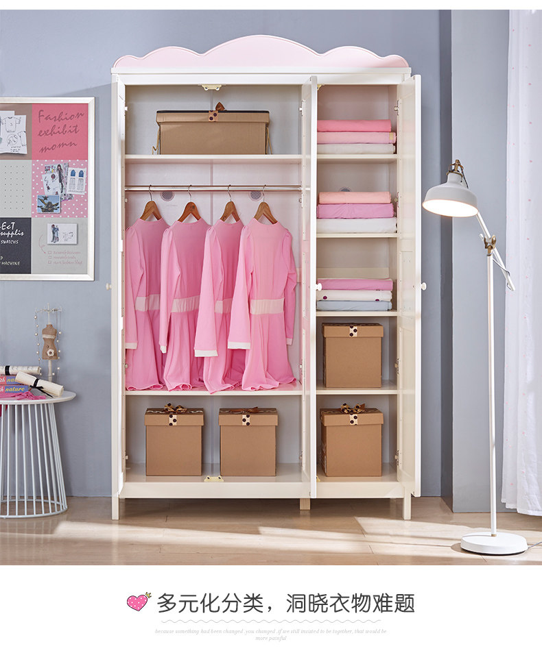 Happy Dreams Treasure Children Wardrobe Three-Door Wardrobe Pink Girl Wardrobe Closet minimalist Bedroom Furniture Containing Cabinet Clouds