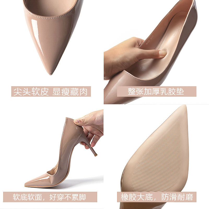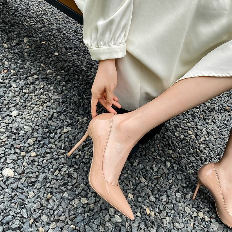 Women's shoes new 2022 hot spring and autumn net red sexy high heels stiletto temperament nude patent leather fairy shoes