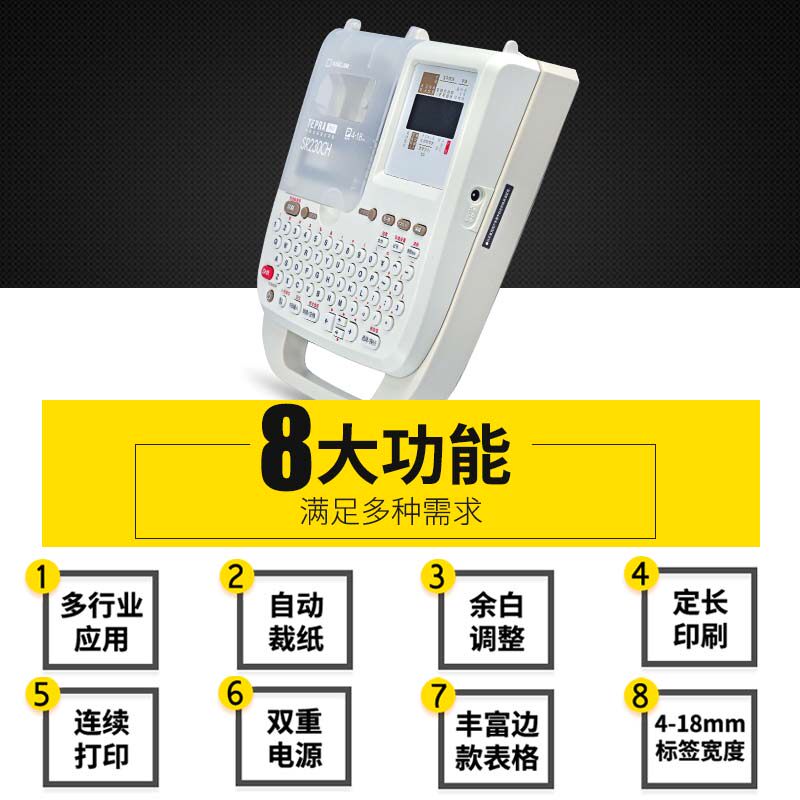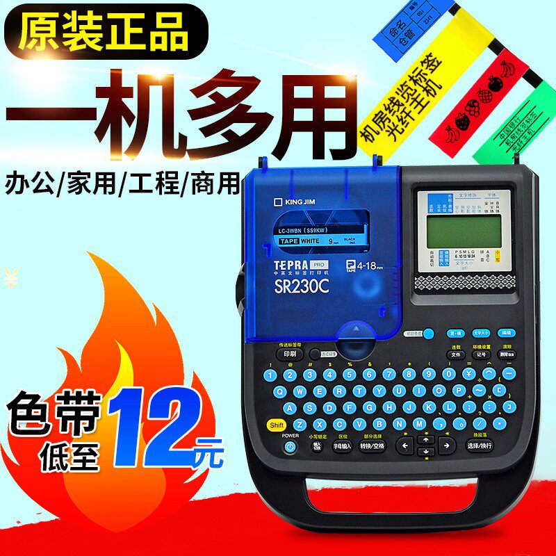 SR230CH comes standard with white battery, white machine, 2 ribbons, 1 ribbon, pen battery, white machine, 5 ribbon, pen battery, white machine, 12 ribbon, pen battery