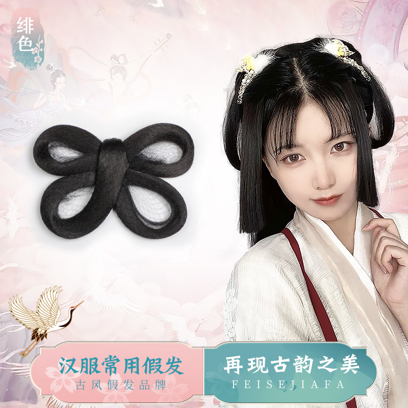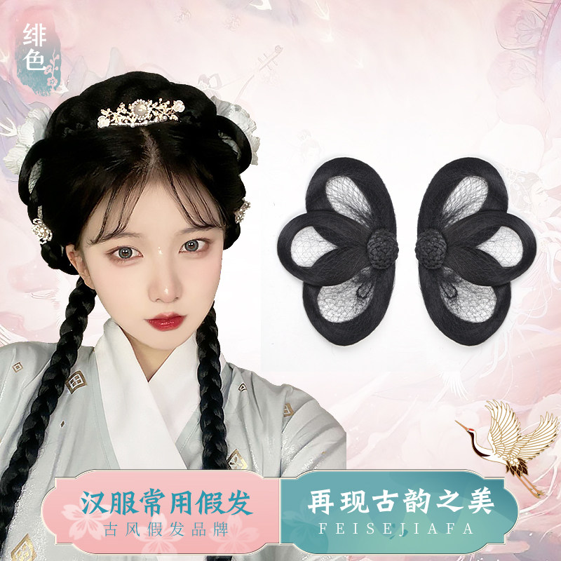 Hanfu wig, three-ring bun, four-ring hair bag