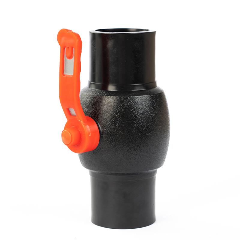PE tube pipe fittings pe large aperture ball valve plastic wrap iron handle butt type large flow ball valve hot melt switch valve