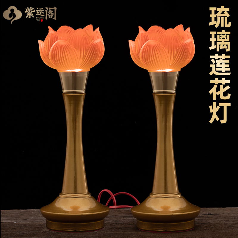 Ziyun Pavilion Buddha front for the lamp Home glass lotus lamp Buddha Hall Changming lamp for the Buddha lamp plug in a pair of electric candles
