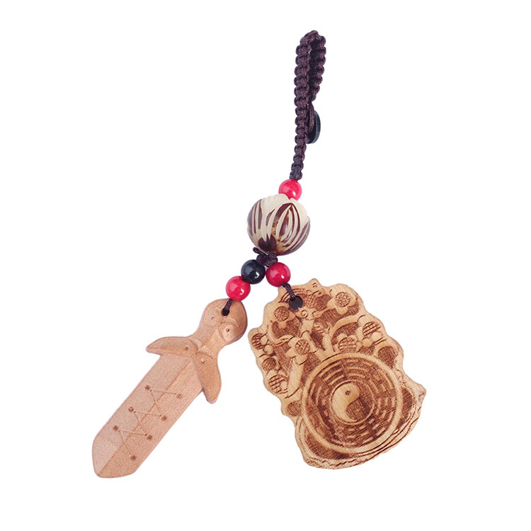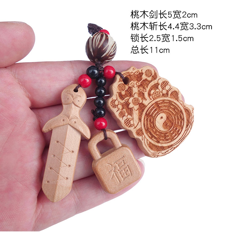 Peach Blossom Sword Peach Wood Cut Keychain Chain Seven Star Sword Carry Peach Wood Sword Bedroom Bedside Small Gossip Mirror Pendant