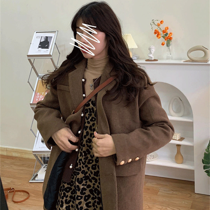 Woolen suit jacket short section female 2022 new temperament small man autumn and winter woolen coat Japanese retro