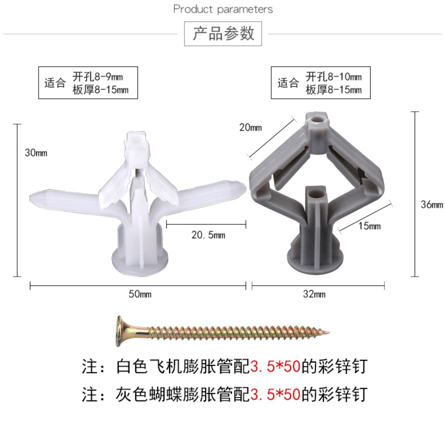 Gypsum board expansion tube aircraft type butterfly hollow plate fixed expansion tube self-tapping spiral nylon expansion tube