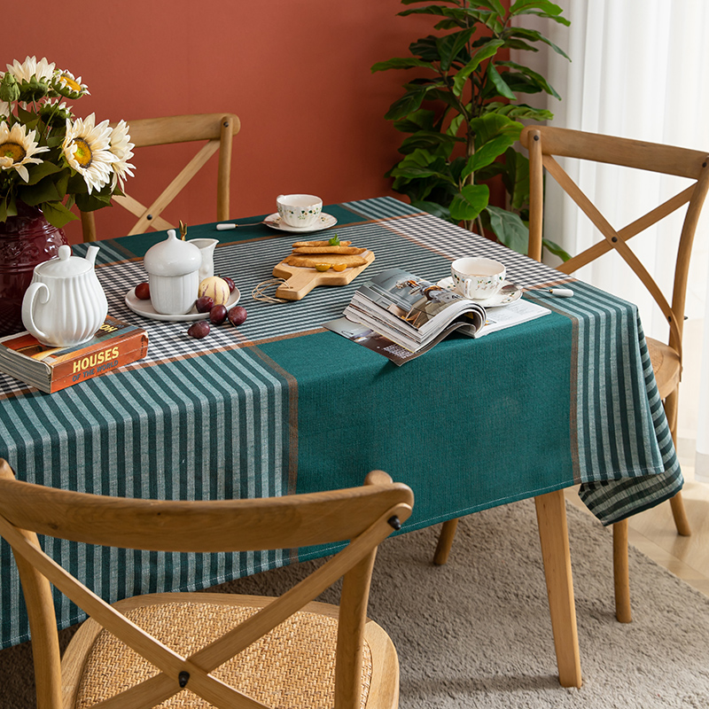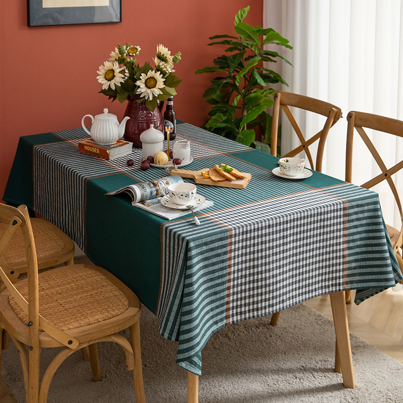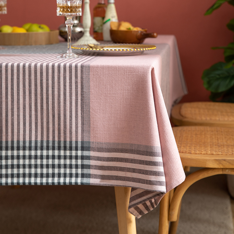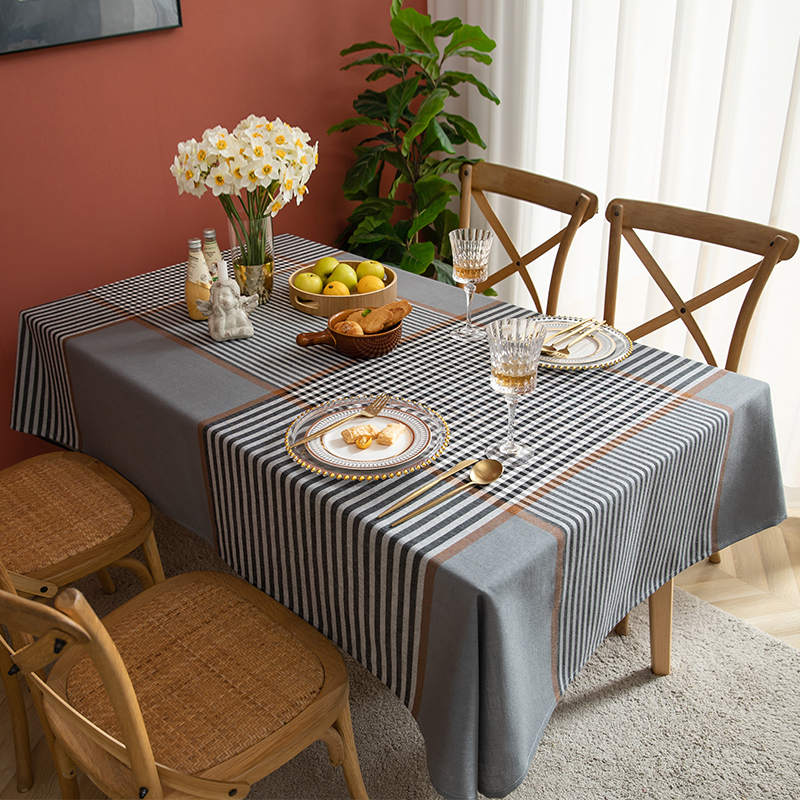 Nordic light luxury plaid striped cotton and linen tablecloth home European-style modern thickened large plaid square tablecloth